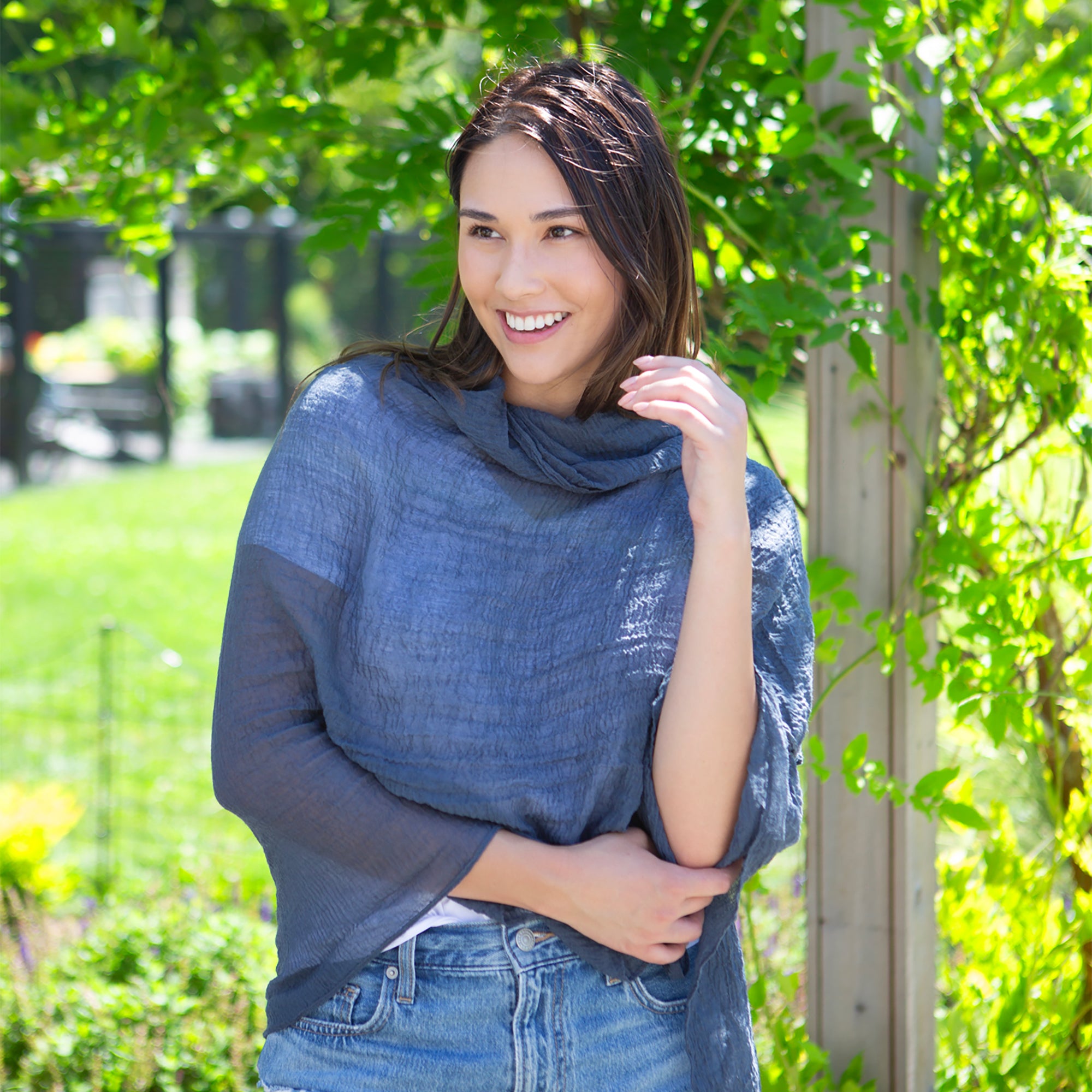 This soft, over-sized scarf will become your favorite take-along accessory. Ideal throughout hot-weather months thanks to its lightweight fabric, wear it as a shawl or wrap to cover your shoulders and torso; drape it over your legs at the dinner table, or simply wear it around your neck! However you wear it, you'll definitely want to keep this handy accessory in your purse wherever you go.